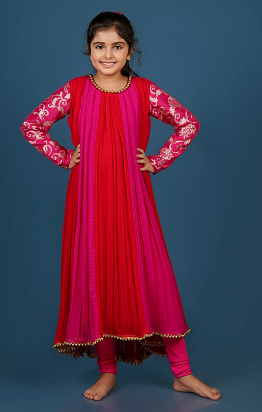 Elegant Crushed Georgette Anarkali with Pearled Hem & Sleeve