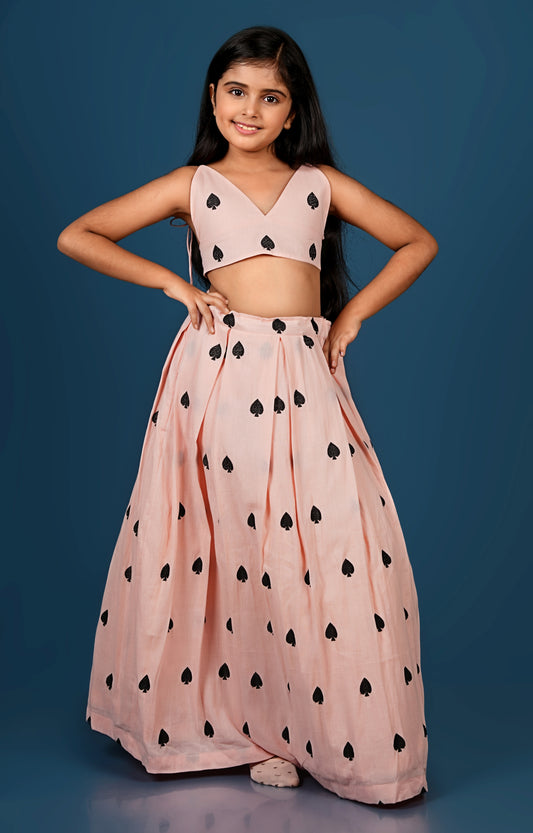 Adorable Peach Spade Embroidered Lehenga Dupatta Set