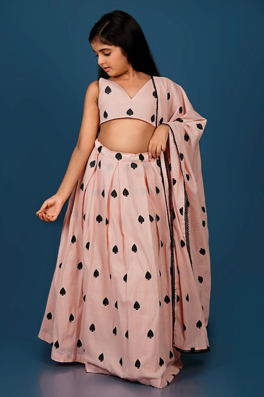 Adorable Embroidered Heart Lehenga Dupatta Set