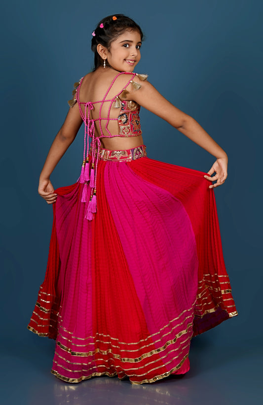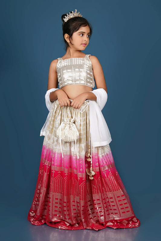 Exquisite Thread Embroidered Top with Dual-Toned Lehenga Dupatta Set.