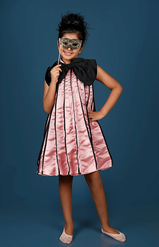 Subtle Pink Meets Black Bow in This Chic Pleated Dress