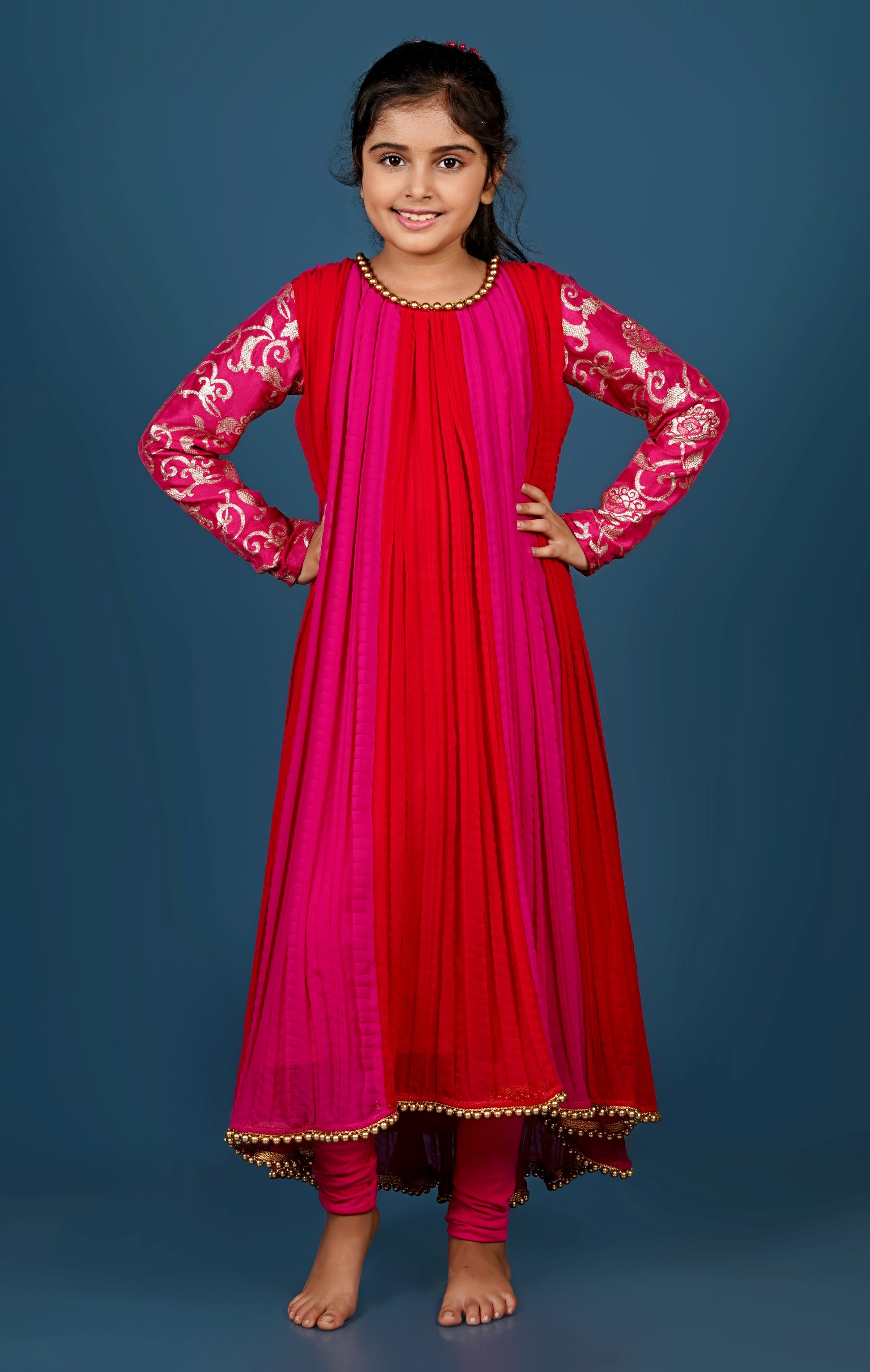 Elegant Crushed Georgette Anarkali with Pearled Hem