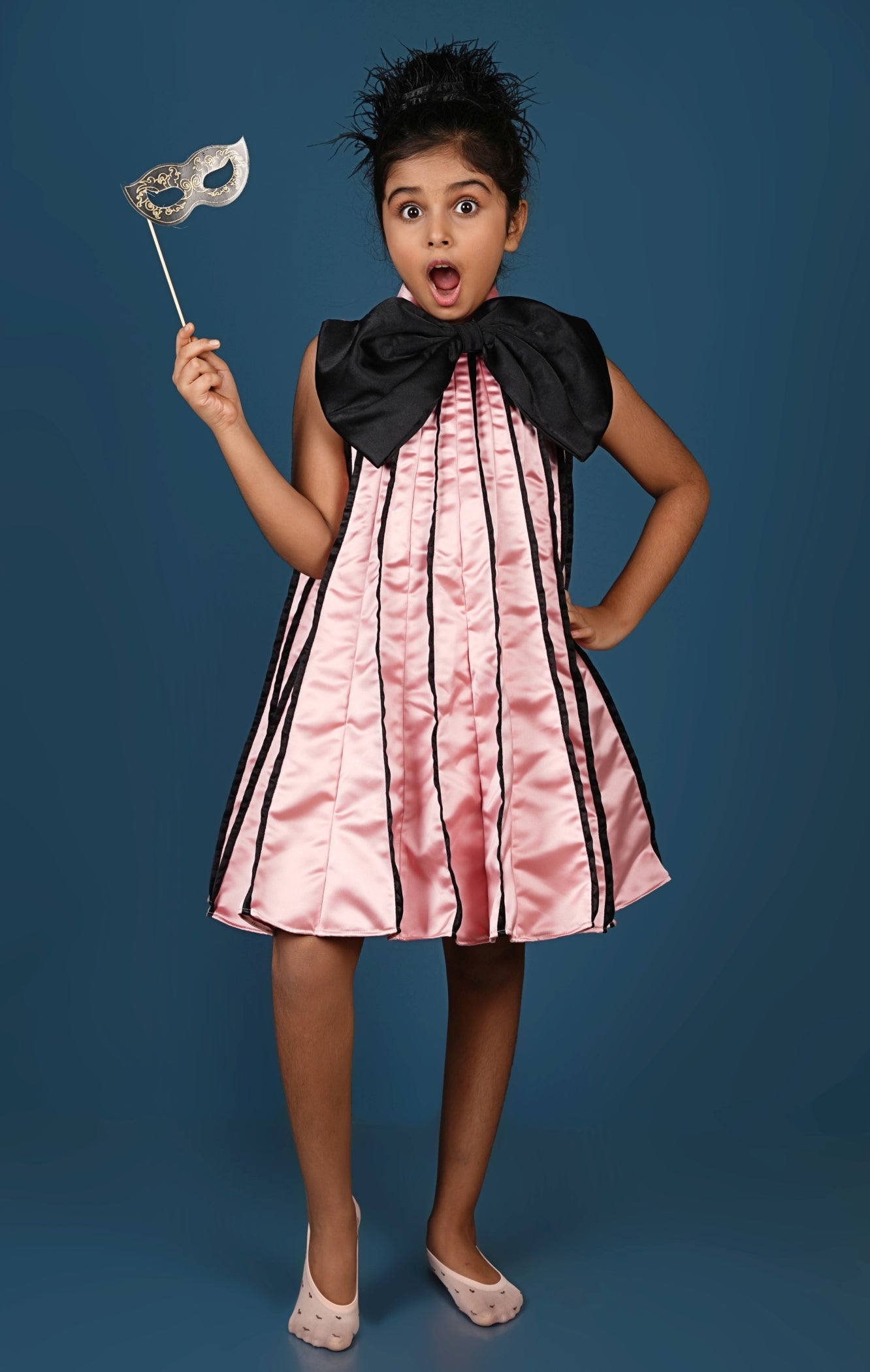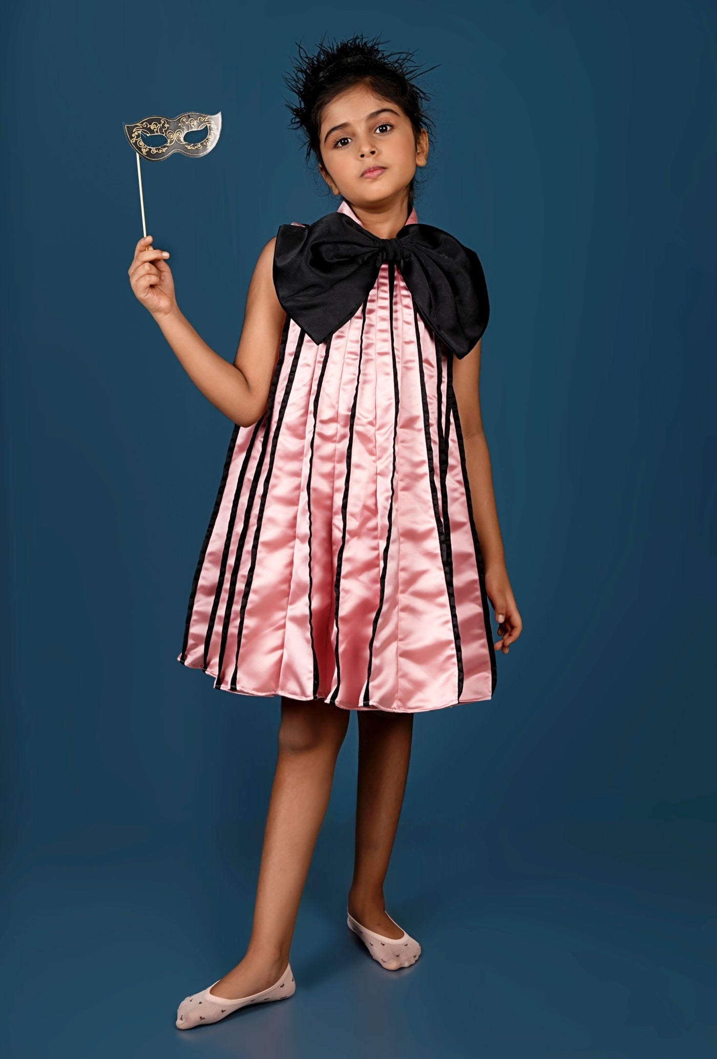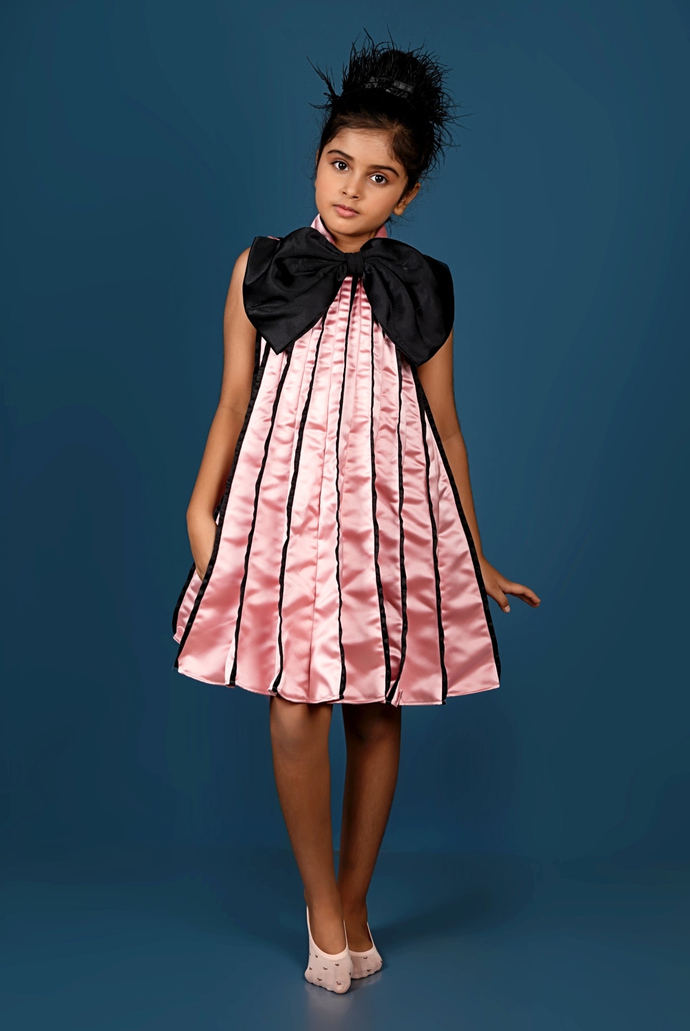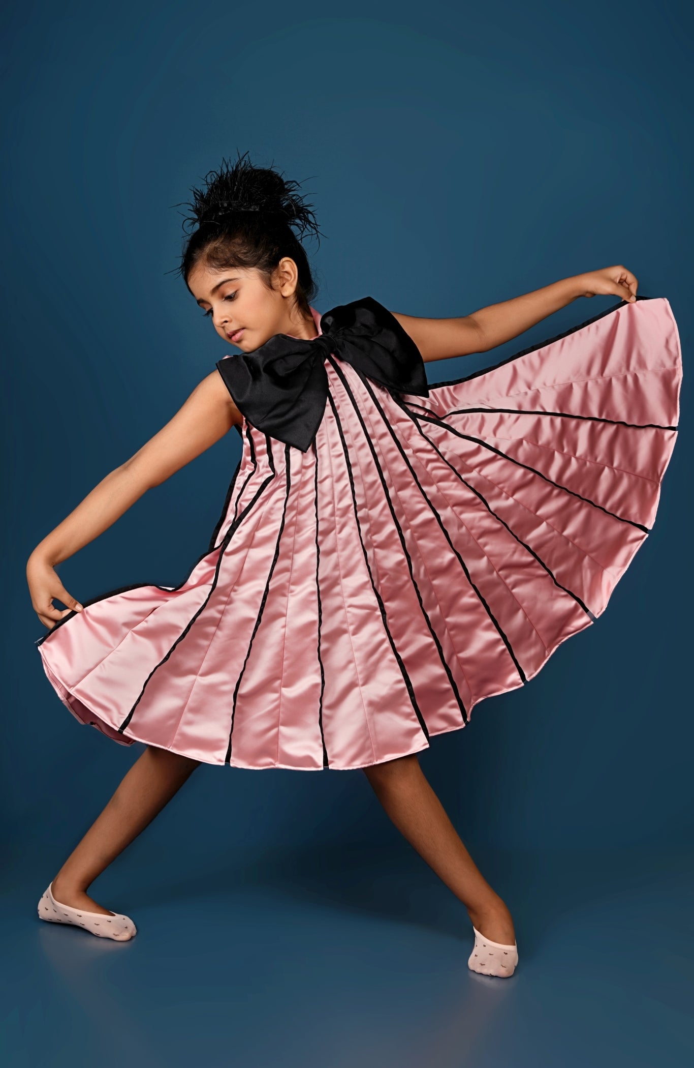 Subtle Pink Meets Black Bow in This Chic Pleated Dress