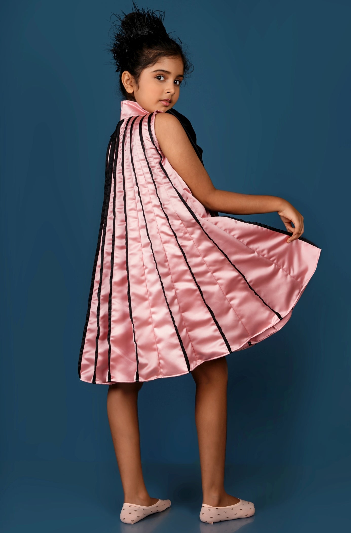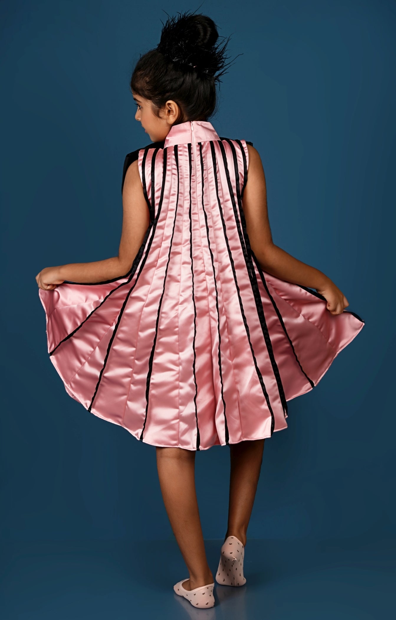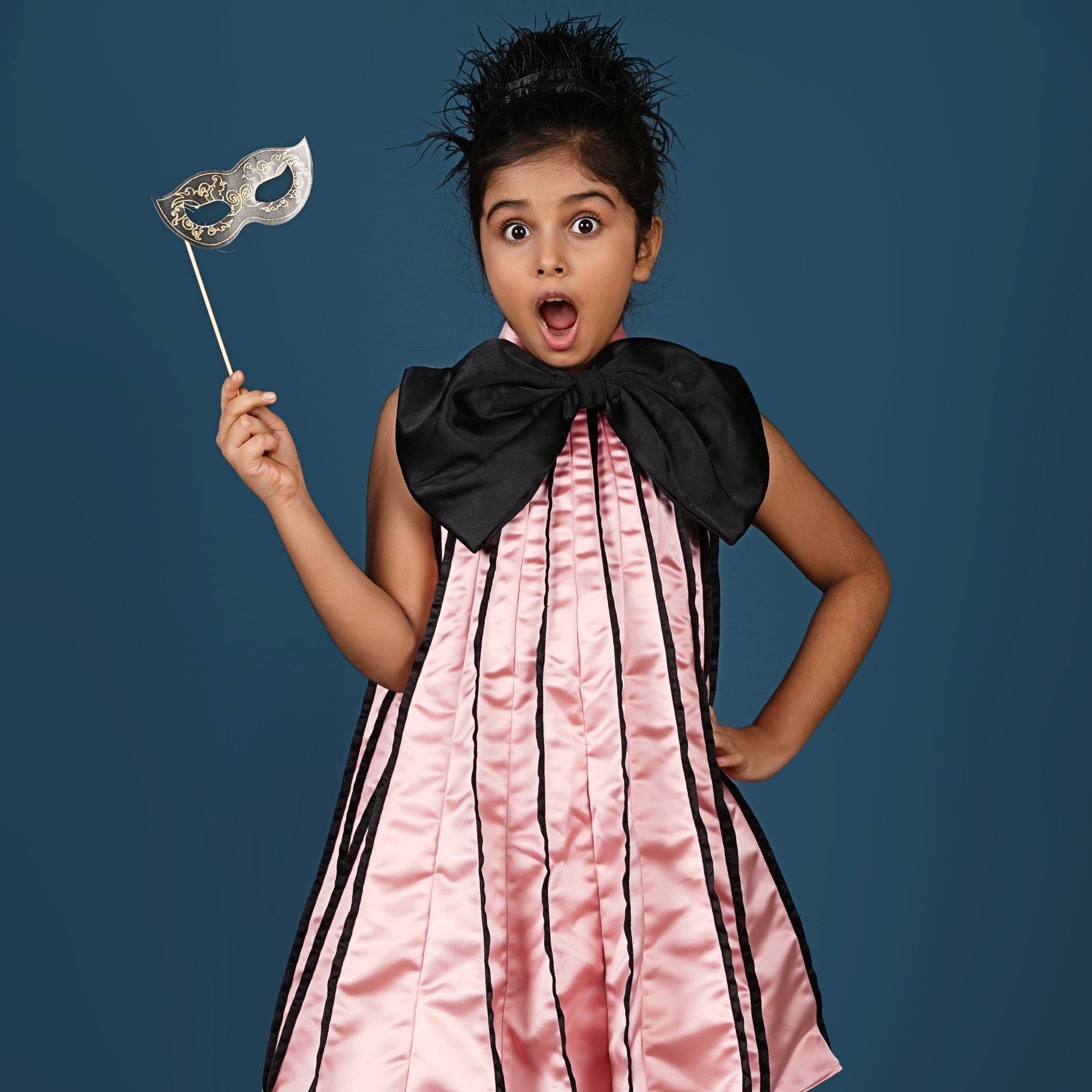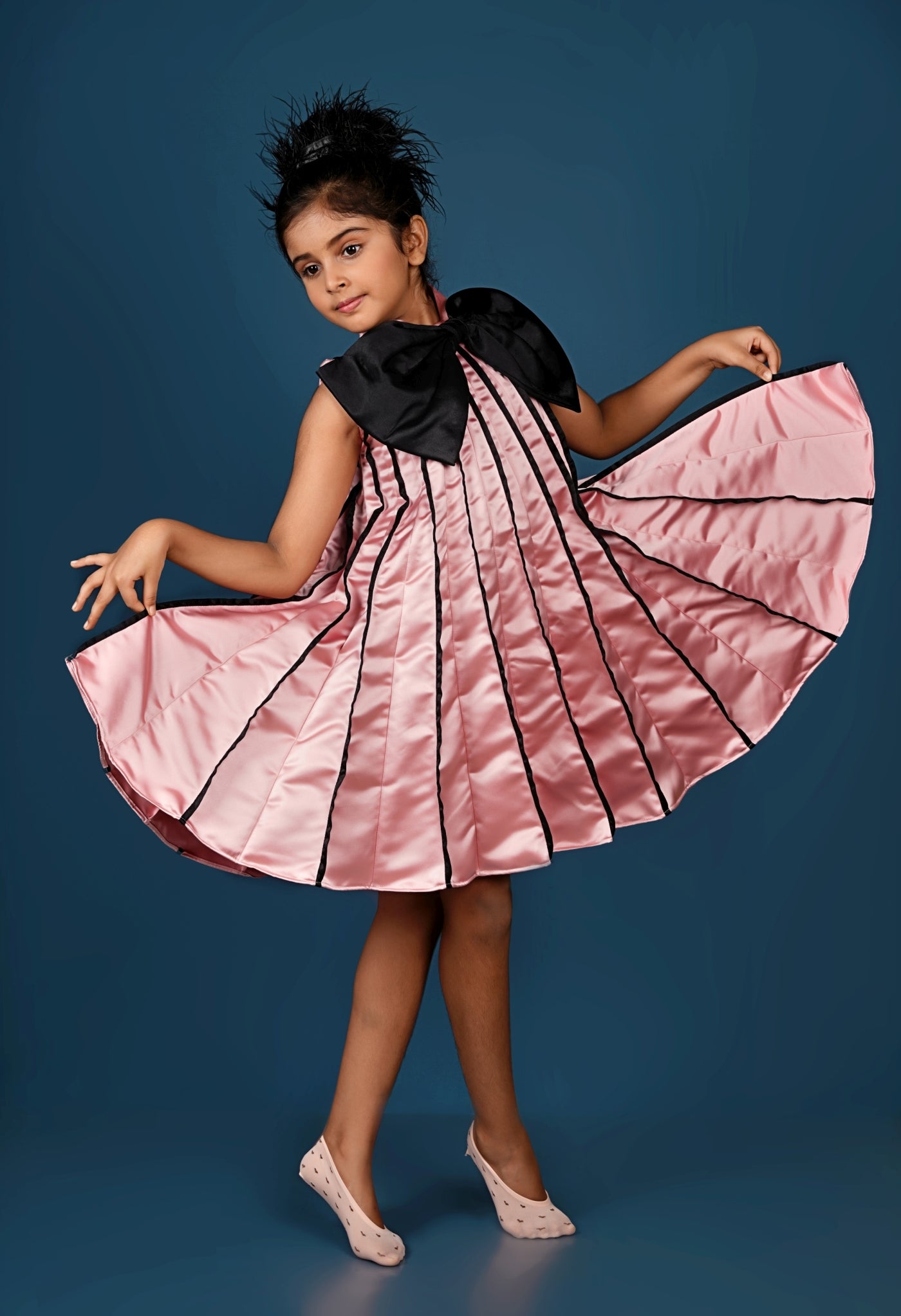 Subtle Pink Meets Black Bow in This Chic Pleated Dress