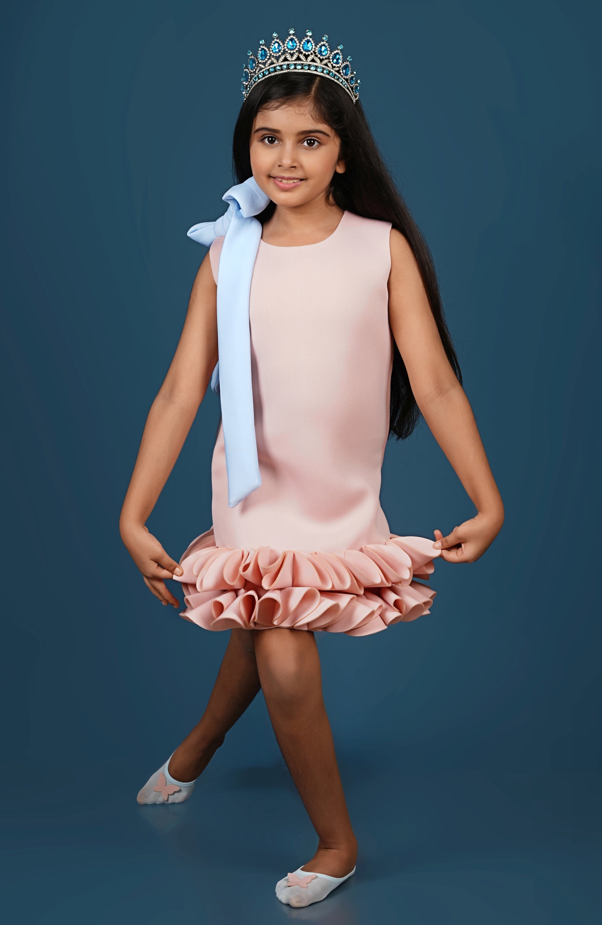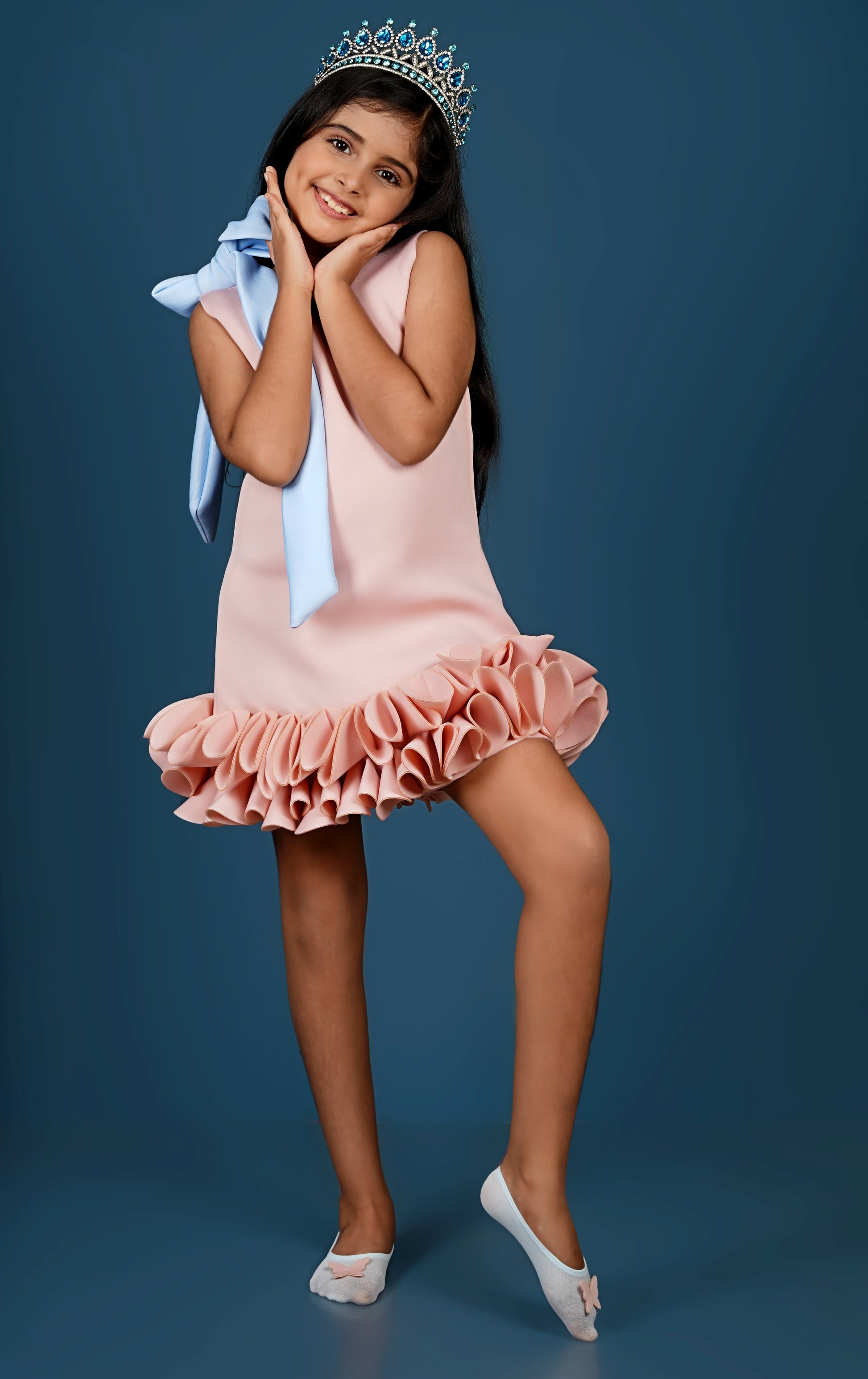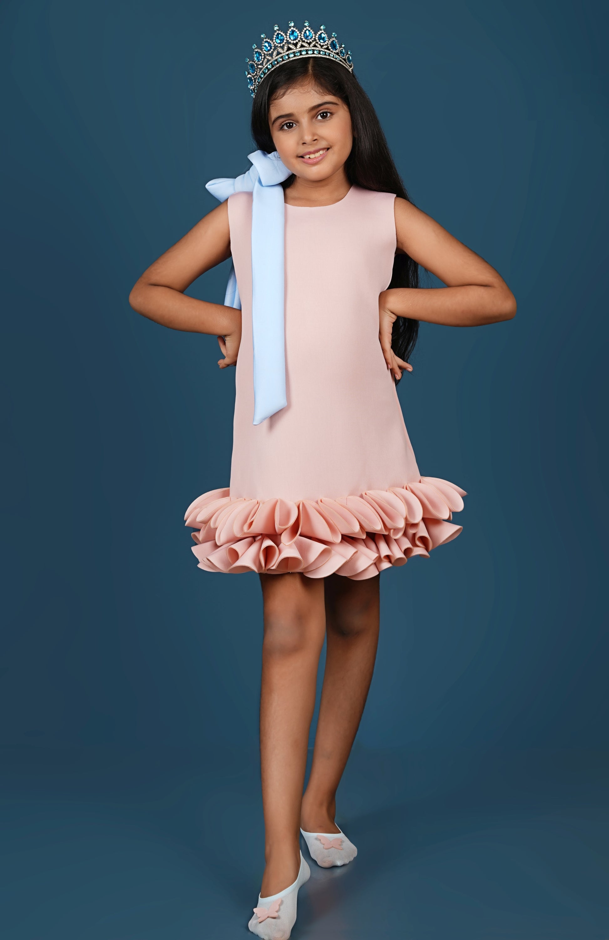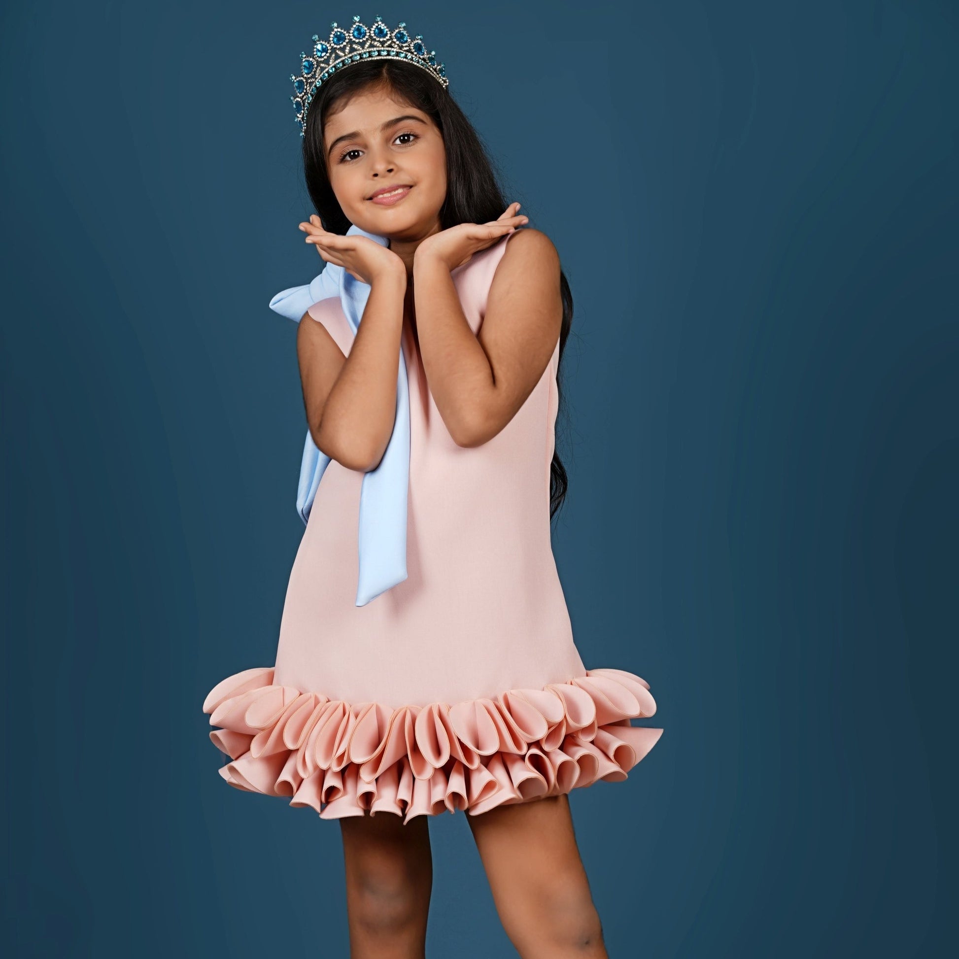 Knot To Tie Bow Enhanced Pleated Ruffle Hem A-Line Dress