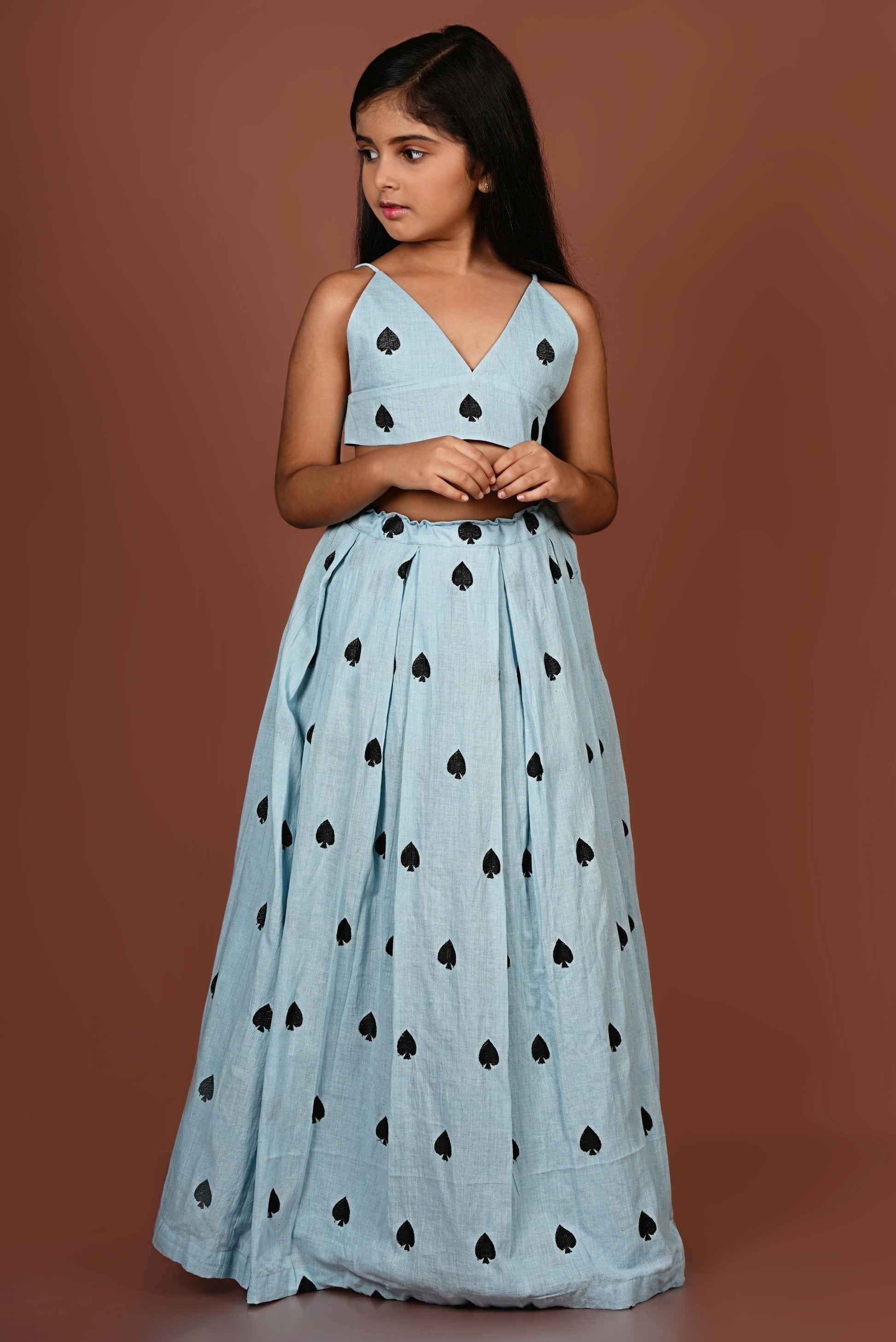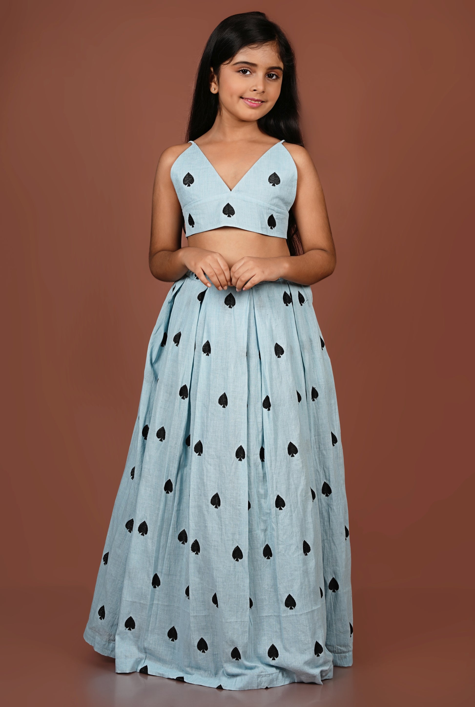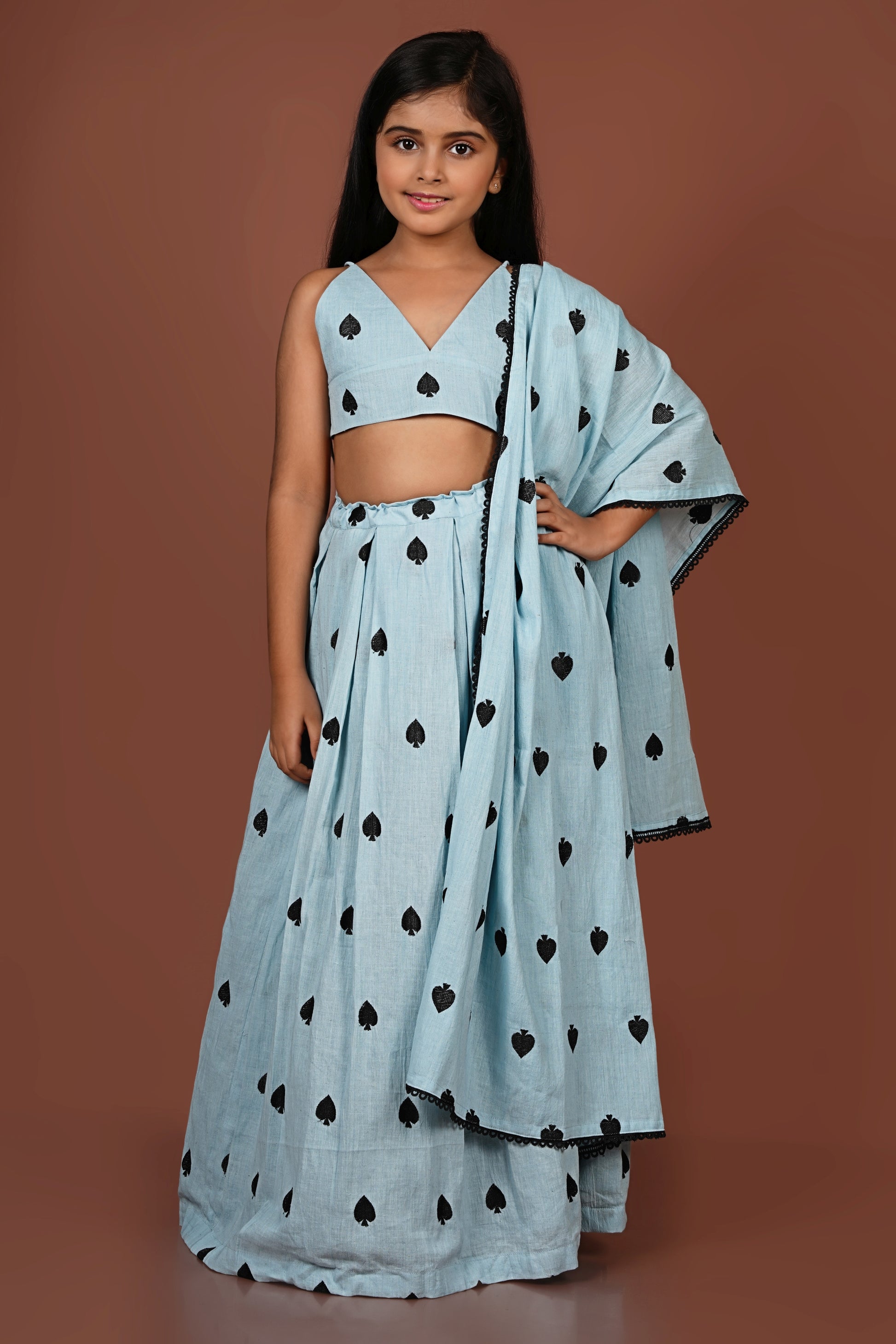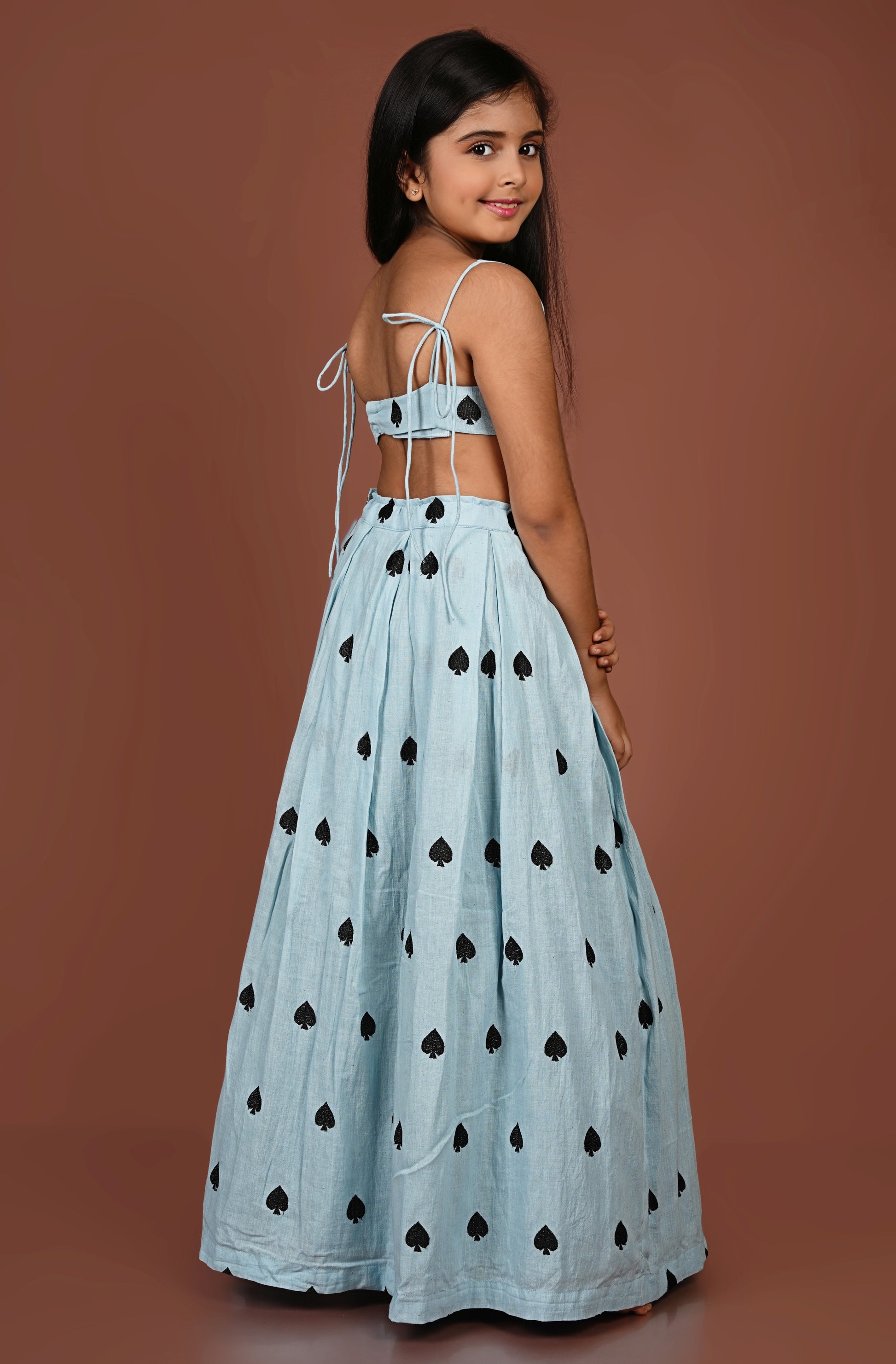Adorable Greyish Blue Spade Embroidered Lehenga Set