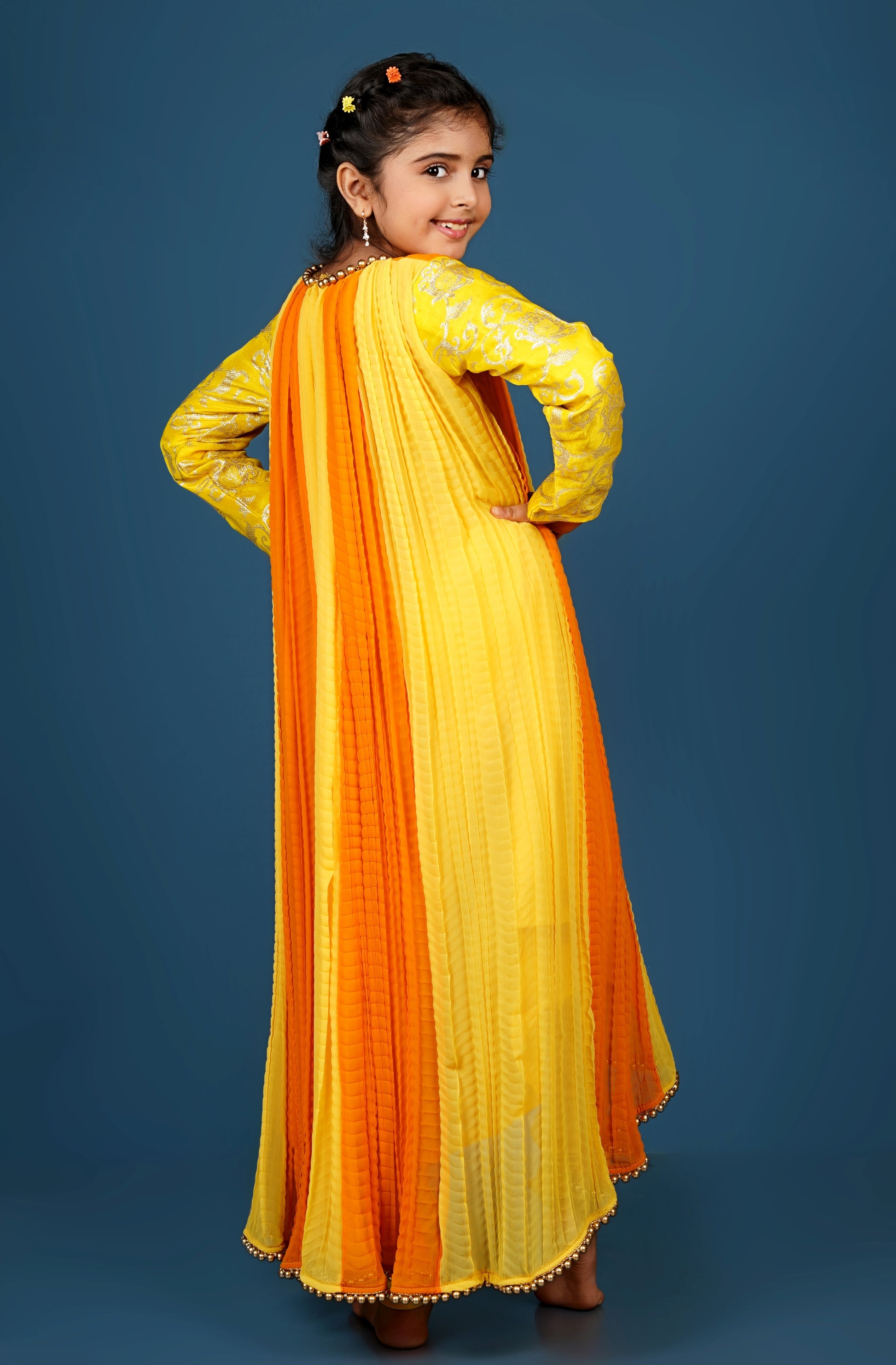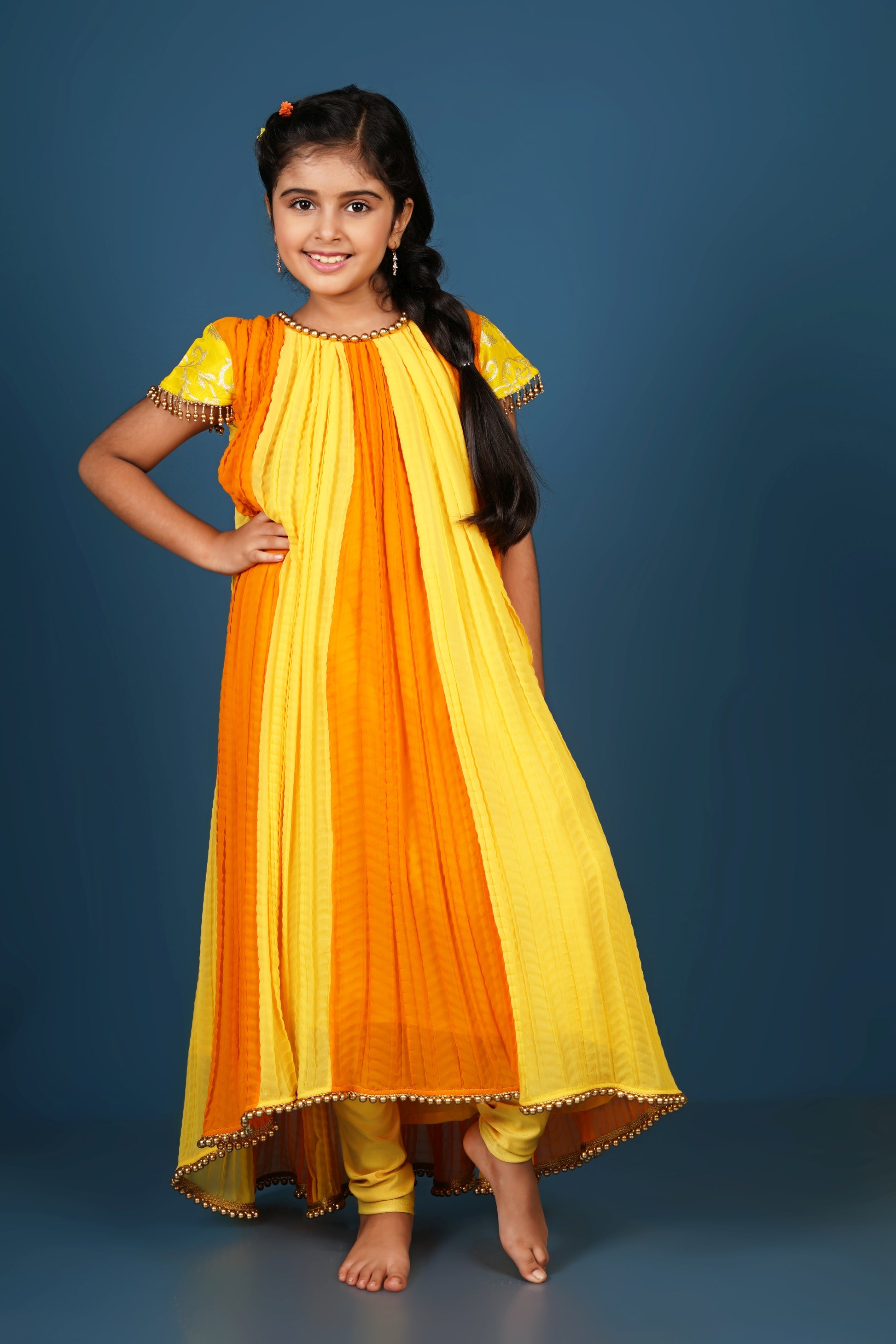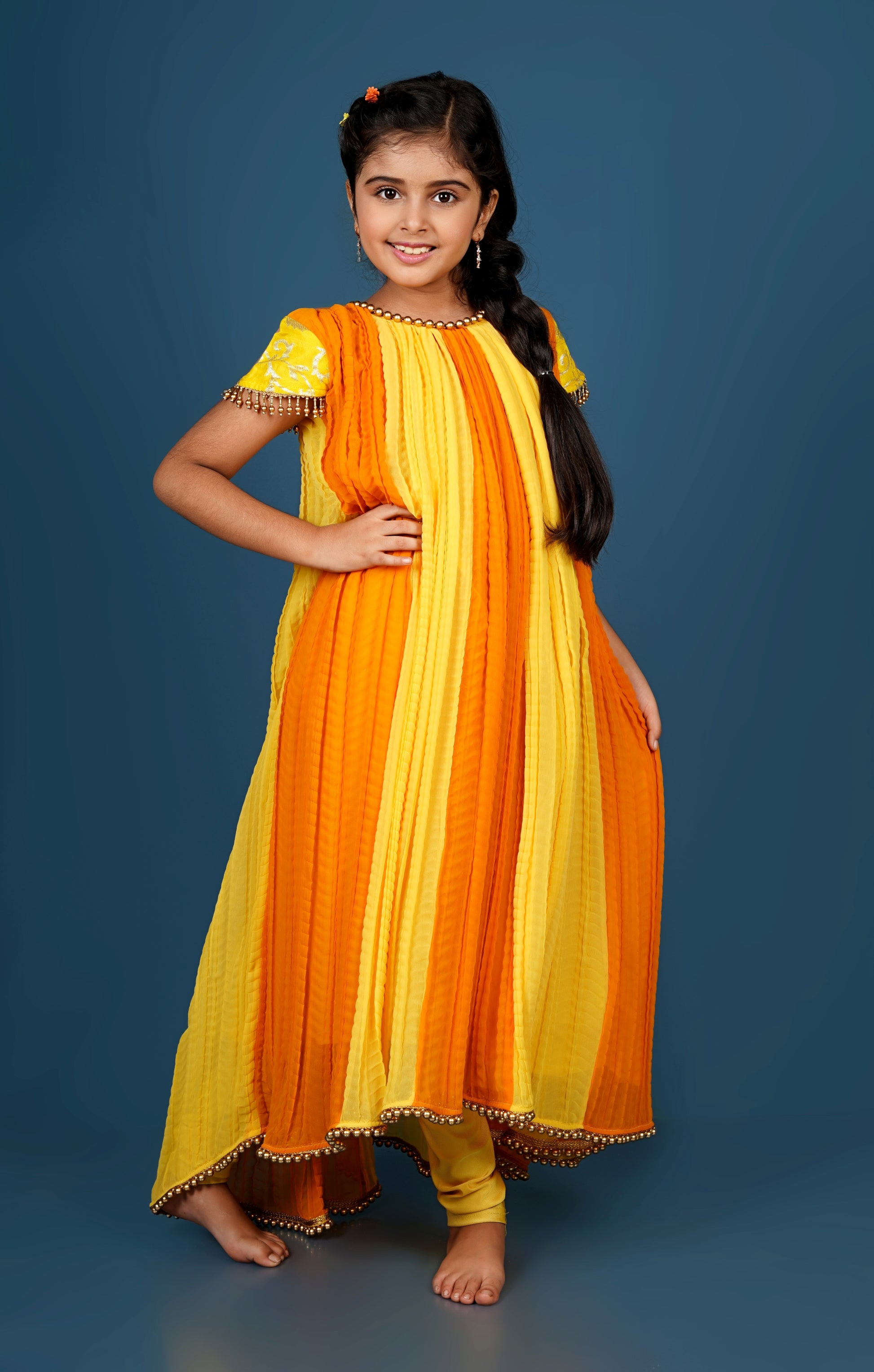 Elegant Crushed Georgette Anarkali with Pearled Hem & Sleeve